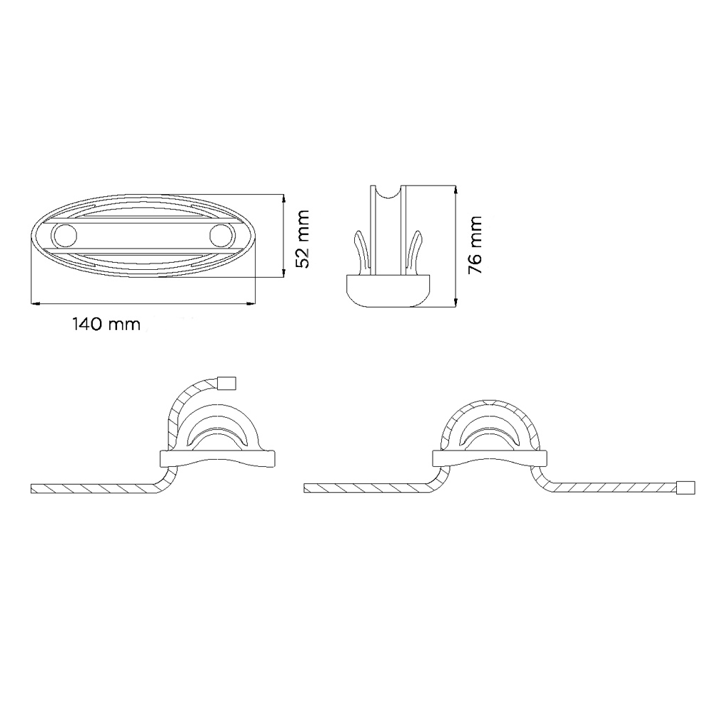 Amortiguador en material termoplástico resistente a los rayos UV, no se deteriora si se deja durante mucho tiempo en el agua, ligero, seguro y resistente, no chirría, no mancha, no raya el casco. Absorbe el movimiento de las olas para una mayor comodidad a bordo.