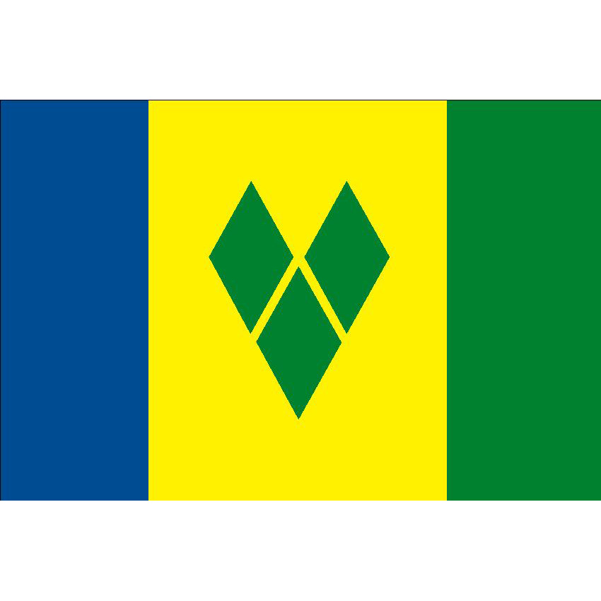 Bandera de San Vicente y las Granadinas, hecha de tela para uso en exteriores, resistencia 100% poliéster, extra resistente para uso en exteriores, gr. 155 metros cuadrados, empaquetados con doble línea de dobladillo perimetral y vaina para subasta para su fijación al asta de la bandera. Artículo disponible en diferentes formatos estándar: 20x30, 30x45, 40x60, 50x75, 70x100, 80x120,100x150, 130x200, 150x225, 200x300.