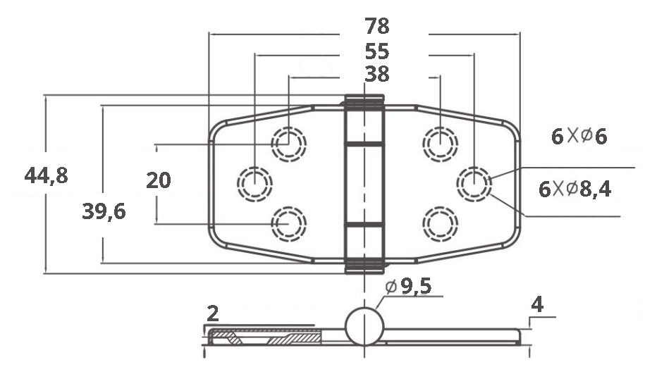 1/2 grosor de bisagra hexagonal 4.5 mm