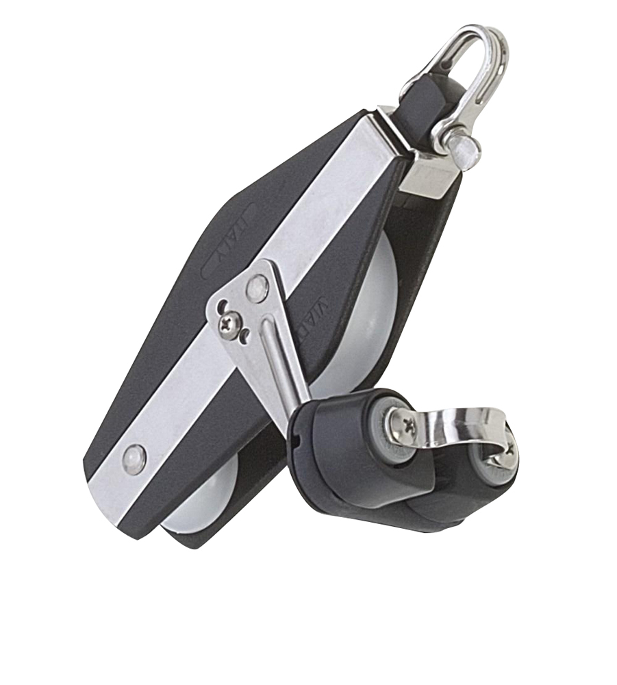 Bloque de violín con dos poleas con bolas con cornamusa, el arte. 7878082 carga de trabajo 370 kg carga de rotura 950 kg, art. 7878083, carga de trabajo 580 kg carga de rotura 1450 kg