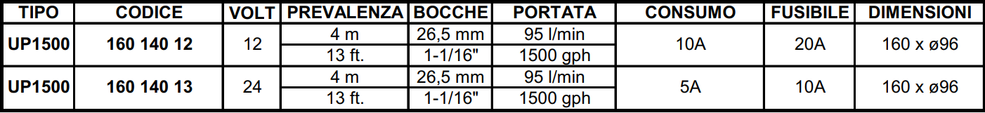 UP1500 Bomba eléctrica de inmersión para vaciado de sentinas.