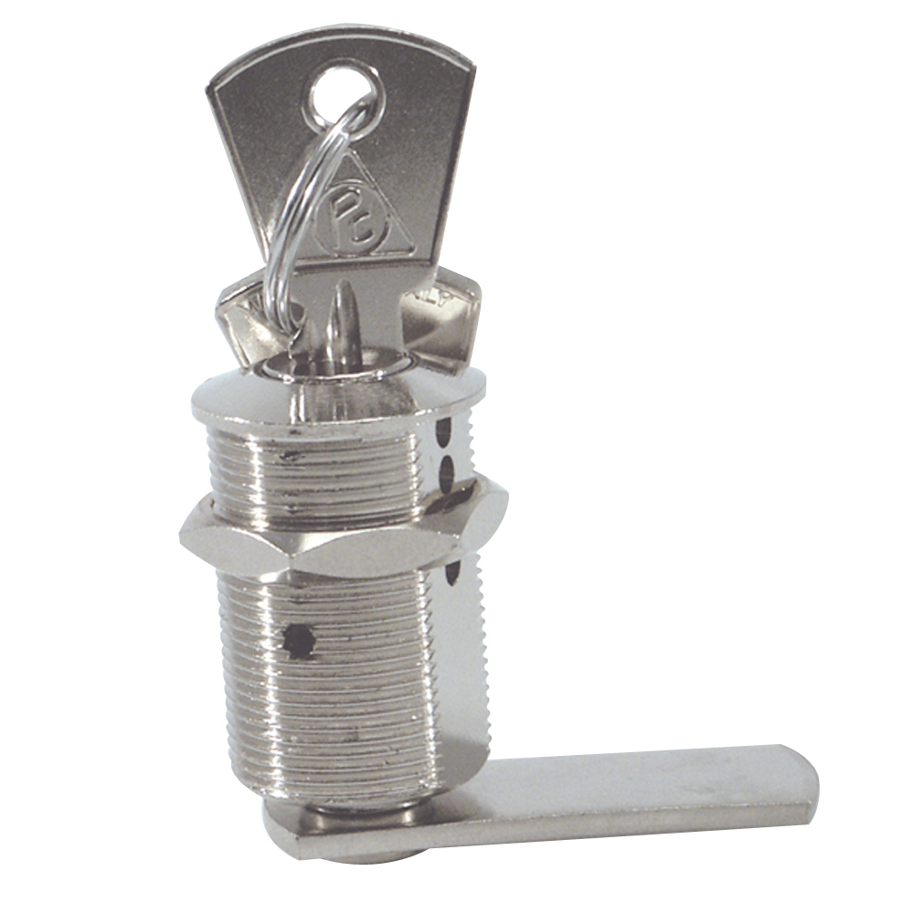 Cilindro completo con llave totalmente en latón cromado. La llave se puede extraer tanto en posición cerrada como abierta.