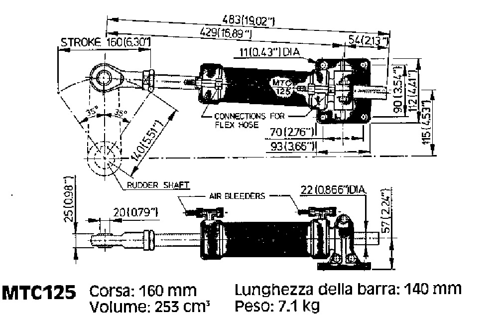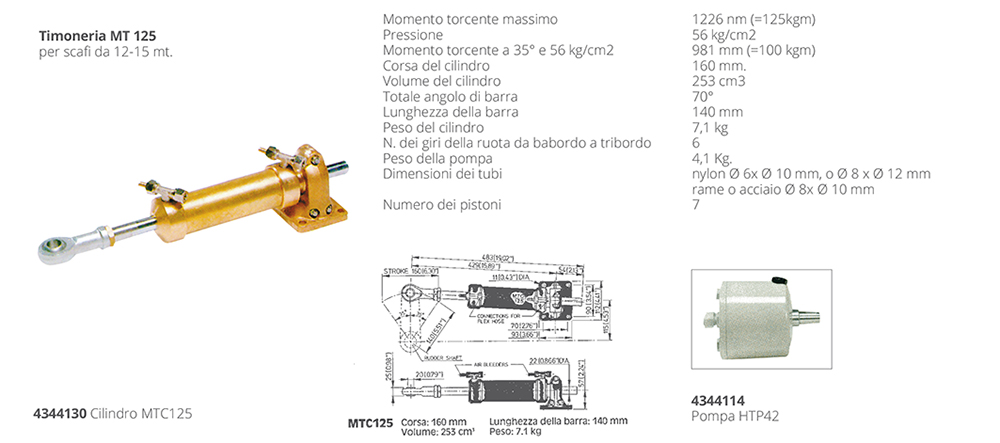 Cilindro MT 125 para sistema de dirección hidráulica Vetus para motores intraborda para cascos de 12-15 metros.