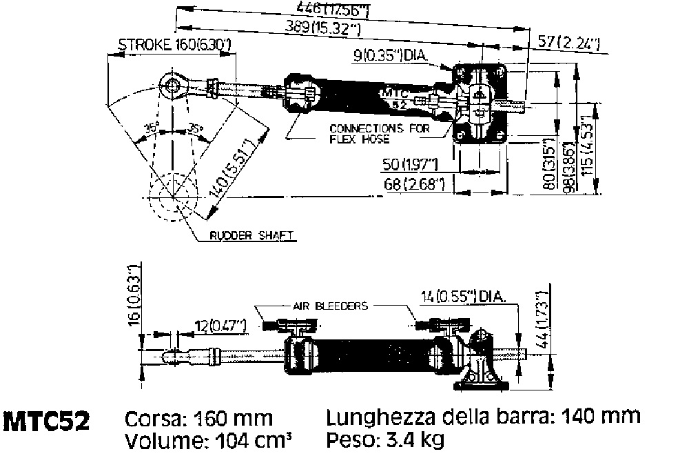 Cilindro Vetus MTC52 para dirección hidráulica