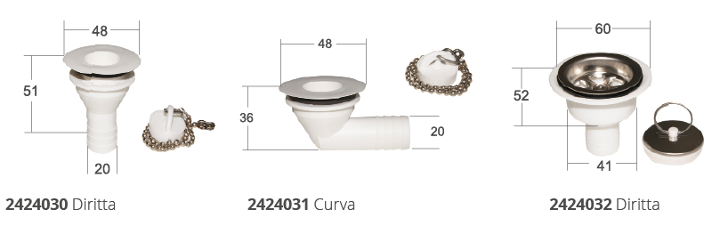 Desagüe desagüe Ø mm. 20 completo con junta de goma, tapa y cadena