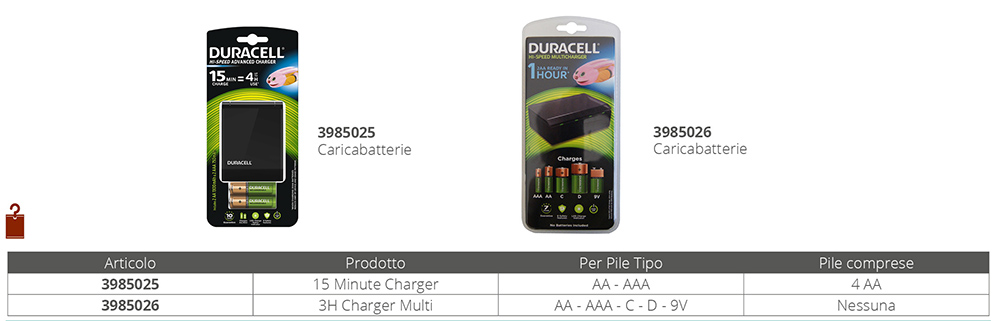 Cargador de batería DURACELL para baterías recargables tipo AA - AAA - C - D - 9V.