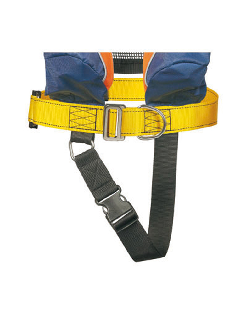 Correa de pierna para chalecos autoinflables. Evita que el chaleco suba, permitiendo así tener la cabeza fuera del agua, facilitando la natación.