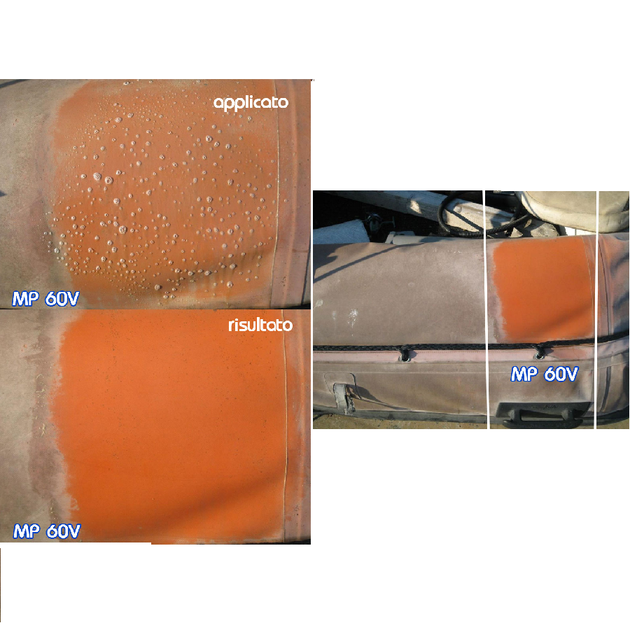 Uno de los problemas de los botes de fibra de vidrio o gelcoat es la limpieza y eliminación de puntos negros generados por la contaminación ambiental y la sal. MULTIPLUS 60V limpia sin esfuerzo grasa, residuos, caliza, nafta, aceite de: casco, cubierta, sentina, motor sin esfuerzo y deja la superficie brillante gracias a los emolientes y humectantes en los componentes del producto. Este último, combinado con nuestro MULTIPLUS 36A, resuelve completamente las operaciones de limpieza y restauración en todo el barco sin dañarlo y ahorrándole tiempo, pero también la estiba de productos que a veces son caros después de unos meses pierden sus propiedades. Diluido 1/10 es un detergente excelente para la limpieza diaria de su embarcación o embarcación. MULTIPLUS 60V es un excelente detergente formulado para limpiar y restaurar botes inflables incluso en situaciones muy comprometidas, restaurando la apariencia original de su bote inflable. El producto no contiene solventes, silicona o ceras que puedan dañar el pegamento, manteniendo la hidratación adecuada en el tejido gracias a los emolientes e hidratantes presentes en su composición y restaura el color original incluso en casos muy extremos.