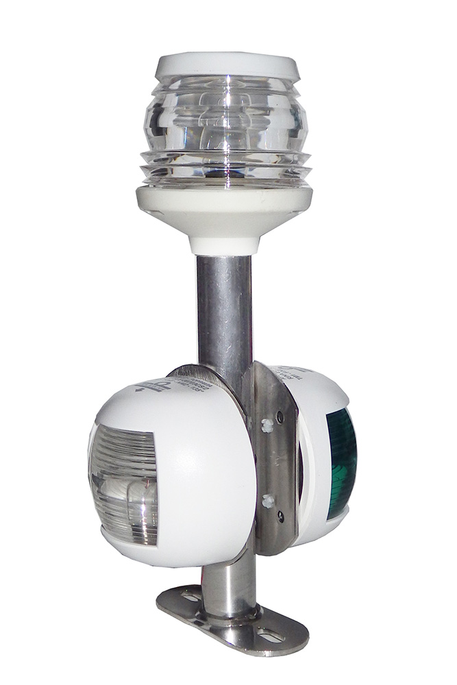Altura del faro combinado mm. 200 que consta de luz de anclaje de 360 °, 135 ° de popa, 225 ° de dos tonos. Base Ø mm. 58, color blanco