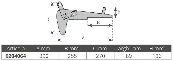 Dim. Longitud mm. 390 x ancho. mm 789 superficie de apoyo mm. 255