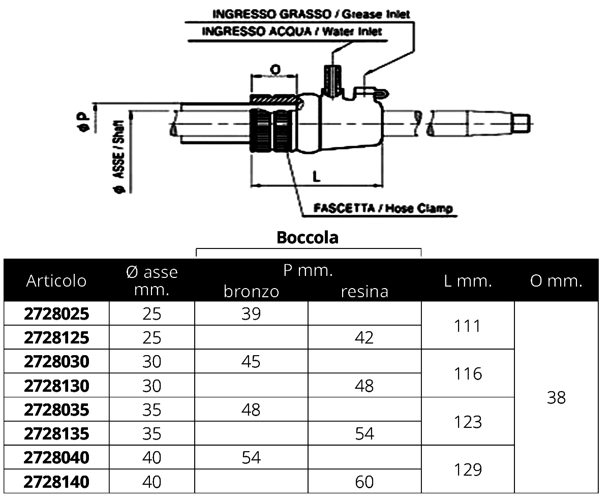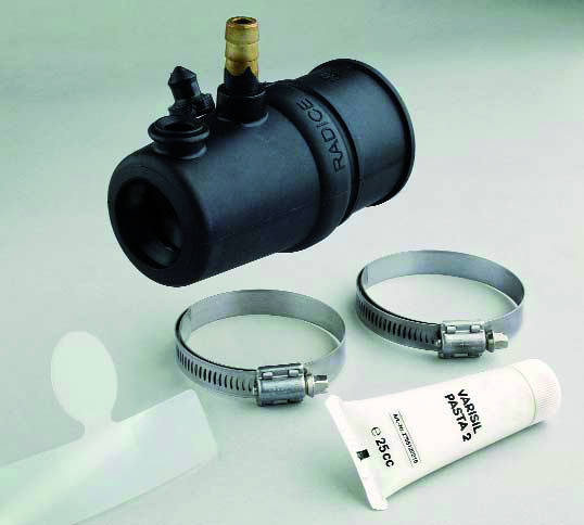 Sellos axiales RMTA en caucho elastomérico autoapriete 'CR'. Sustituye a los casquillos tradicionales por ejes de hélice métricos. Equipado con racor de manguera para la hidrolubricación del eje, racor para la inserción de grasa, abrazaderas, grasa y protección para facilitar el montaje.