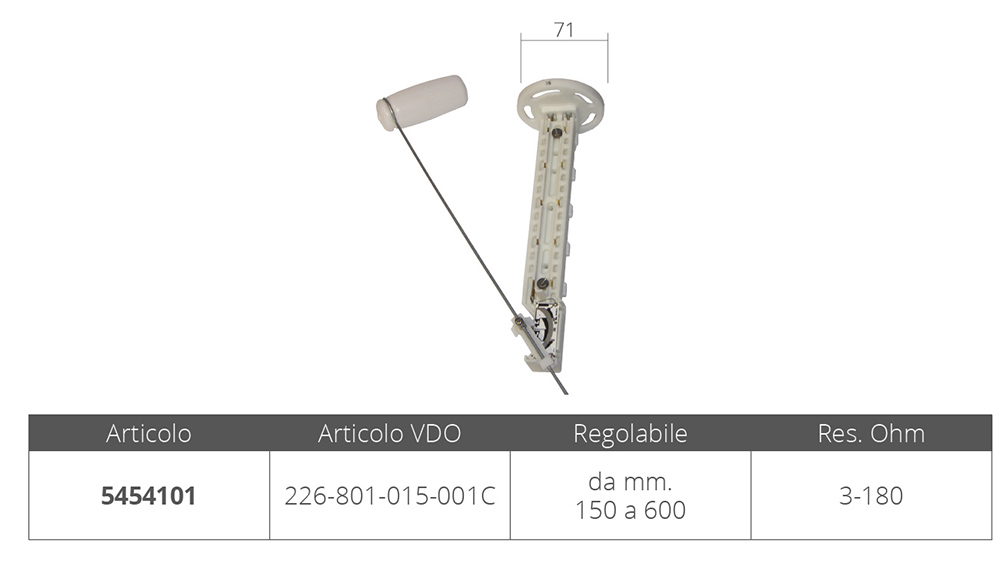 Sensor de palanca para depósitos de combustible regulables desde mm. 200 a 600 completo con juntas. Compatible con indicadores 54.0004254.0014254.0004154.2013754.2014354.54534 / 634 / 73454.54538 / 638/738