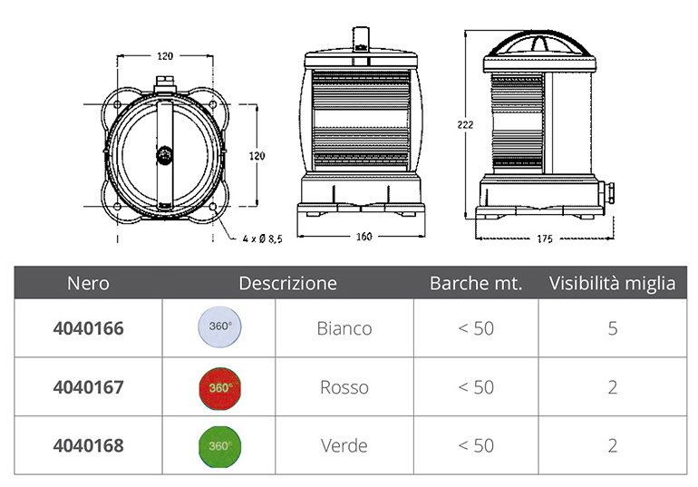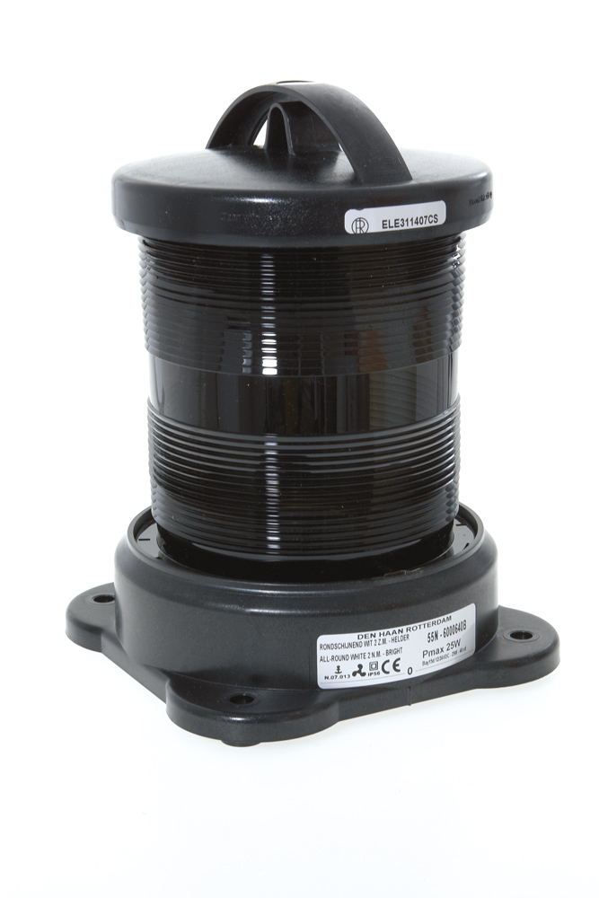 Alumbrado público homologado RINa. y MED 96/98 - EC para embarcaciones comerciales en policarbonato negro, completo con certificado de homologación en el interior de la luz. Se suministra sin bombilla.