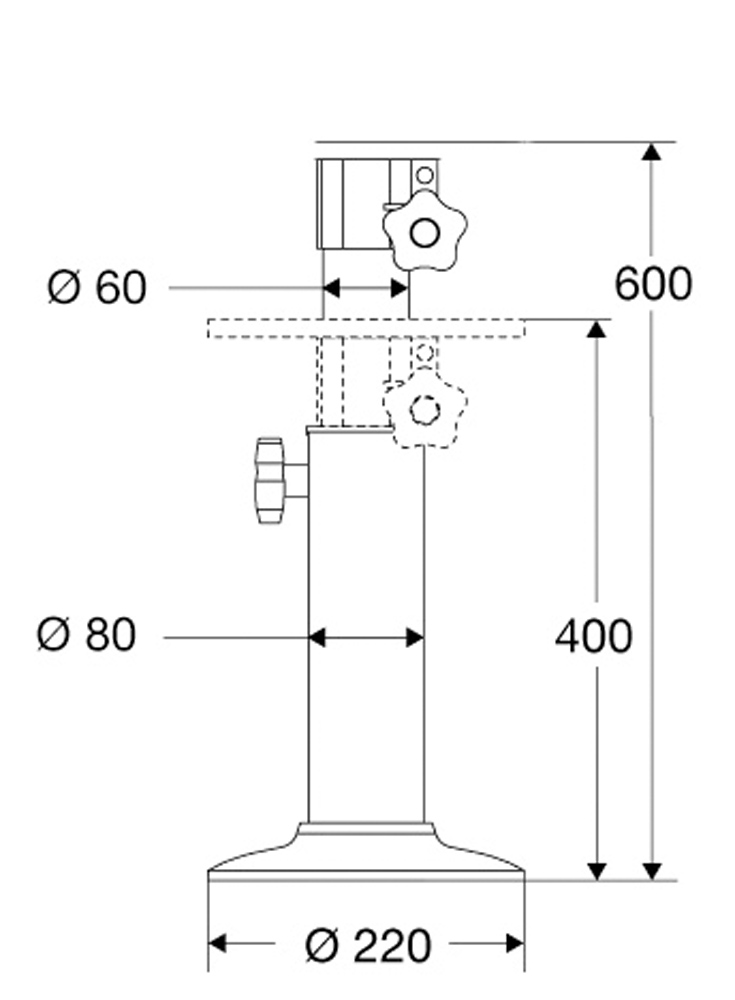 Soporte para asiento o mesa en aleación ligera anodizada, telescópico y giratorio.