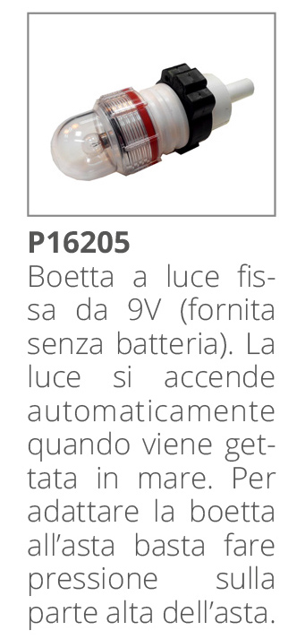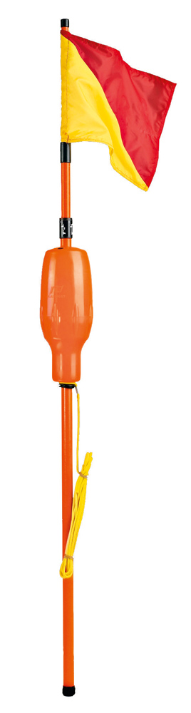 Pértiga telescópica IOR que cumple con las especificaciones de la normativa de competición ISAF / ORC. Compuesto por varilla telescópica de fibra de vidrio, flotador cilíndrico en PVC blando y resistente a los golpes (Dim. Mm. 360H, Ø 180/80), bandera hombre al agua roja y amarilla mm. 450 x 350, línea flotante amarilla cm. 300, peso de plomo integrado, clip y cordón para mantener la bandera enrollada. Emerge por cm. 230. Boya luminosa opcional.