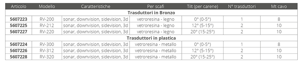 Transductores para Axiom y Axiom PRO con instalación a través del casco. Diseñados para embarcaciones interiores o exteriores, le permiten identificar estructuras y localizar peces fácilmente a través de imágenes claras y realistas de la sonda RealVision 3D ™. CHIRP de 4 canales, banda alta y amplio espectro que incorpora sondas DownVision ™, SideVision ™. Sensor de temperatura del agua de respuesta rápida integrado para lecturas rápidas y precisas. El sistema RV-212/20 y RV312 / 20 cuenta con dos transductores a través del casco, uno transmite y recibe a babor y hacia abajo, el otro a estribor y hacia abajo, lo que garantiza una cobertura total de 180 ° bajo el agua incluso en barcos con quillas profundas u otras repisas bajo el agua. . El transductor incluye 2 metros de cable, 1 unión en Y y una extensión de 8 metros, para un total de 10 metros (33 pies).