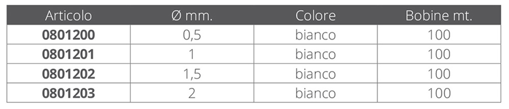 Trenza 100% nailon de alta tenacidad, sin núcleo interno. El nailon es un hilo particular que tiende a encogerse cuando está mojado, lo que garantiza la máxima sujeción en nudos y ataduras. Ideal para coser, atar, empalmar, reparar y construir redes de pesca, etc. Nylon de alta tenacidad, para coser, atar, empalmar, etc. Color blanco. Bobinas de mt. 100