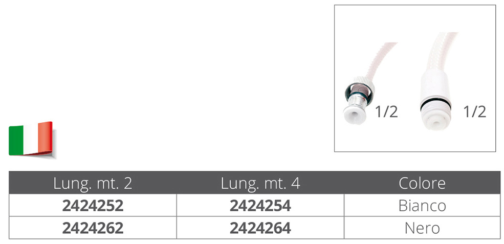 Manguera flexible con nuevo acoplamiento anti-pliegues compatible solo con nuestras duchas artículo 2424255/265/275.