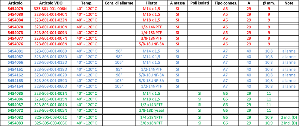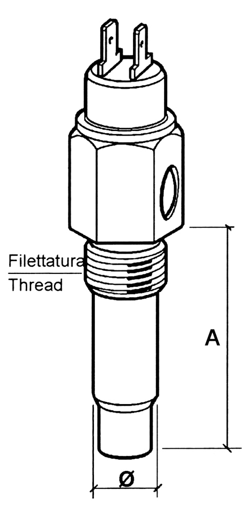 Sensor con rango de trabajo de 40 ° a 120 ° C. Contacto a tierra en la propia bombilla. - Art. Vdo 323-801-001-006N Unidad de medida
