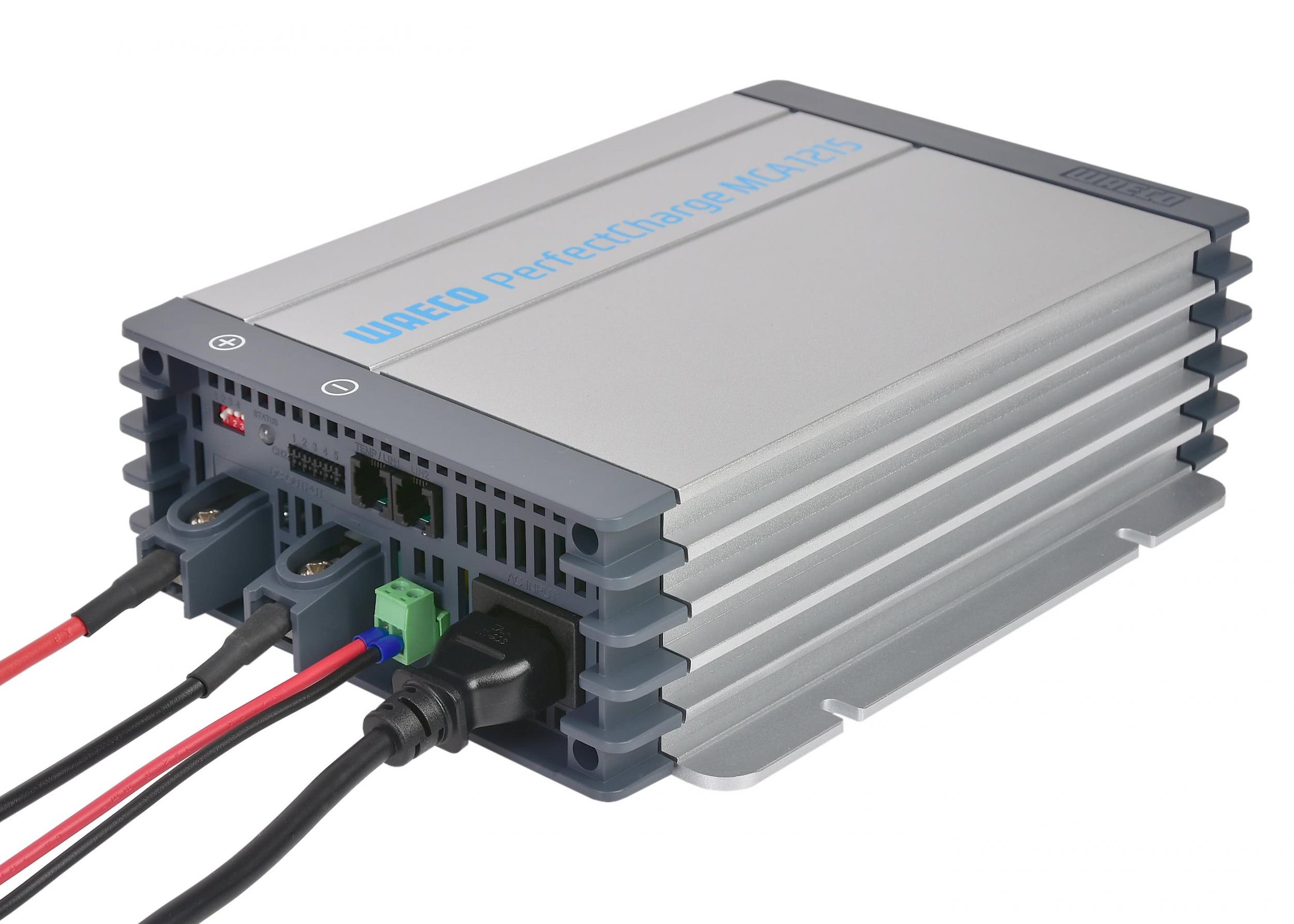 Cargador automático 15A / 12V y 15V / 24V para uso móvil. Ideal para yates y veleros. Protección contra sobrecarga y cortocircuito, modo "dormir", fijaciones ajustables, cables organizados, adaptador de aire de escape, 1 salida.